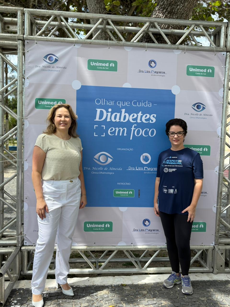 No dia 14 de novembro, a Unimed Costa do Sol realizou, na orla da praia de Imbetiba, em Macaé, mais uma edição da campanha “Olhar que Cuida – Diabetes em Foco”, em parceria com a oftalmologista, Nicolle de Almeida, e a endocrinologista, Liza Negreiros. A iniciativa buscou conscientizar a população sobre a importância do diagnóstico precoce, do controle adequado da doença e da atenção contínua à saúde ocular, pilares essenciais para a prevenção de complicações graves associadas ao diabetes.