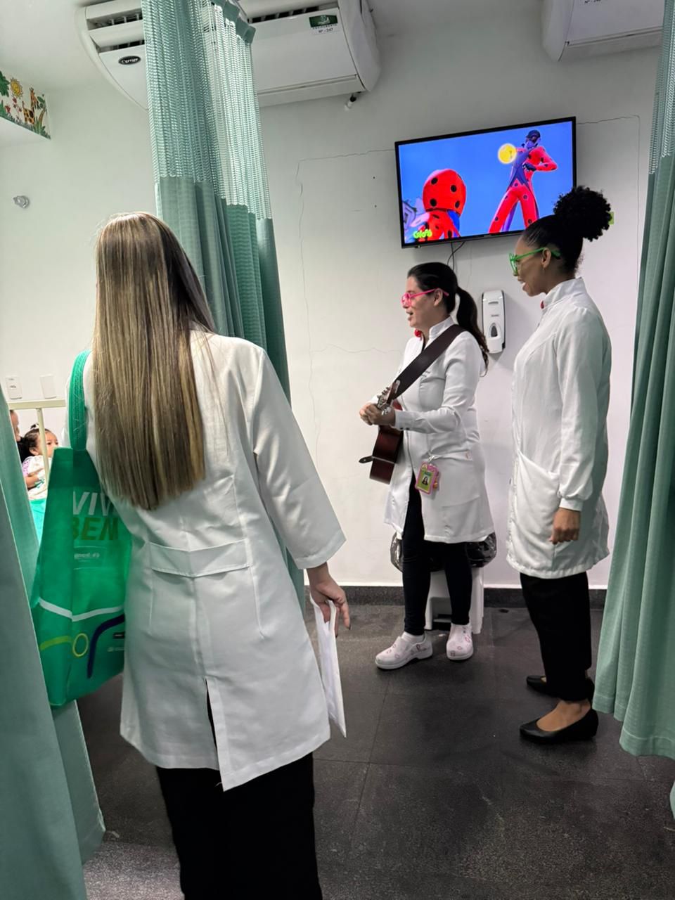 A Unimed Campos iniciou, no dia 10 de novembro, no Pronto Atendimento, na UTI Adulto e na UTI Pediátrica, o projeto “Terapia do Riso”, uma iniciativa dedicada à promoção da humanização no cuidado em saúde, utilizando o humor, a leveza e a música como instrumentos para gerar bem-estar. Por meio de intervenções planejadas e realizadas por colaboradores voluntários, a ação busca transformar o ambiente hospitalar, oferecendo momentos de descontração, conforto emocional e presença afetiva para pacientes, seus familiares e colaboradores.
