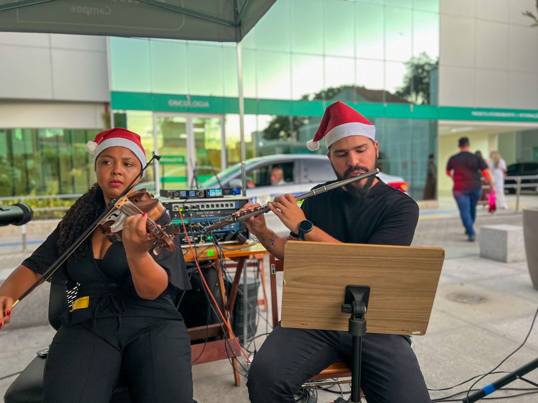 Ao final da cantata, no pátio, parte da equipe percorreu os corredores do hospital, levando músicas natalinas, presentes para as crianças e mensagens de carinho aos pacientes, proporcionando momentos de emoção e conforto e reforçando o compromisso da operadora com o cuidado que vai além da assistência em saúde.