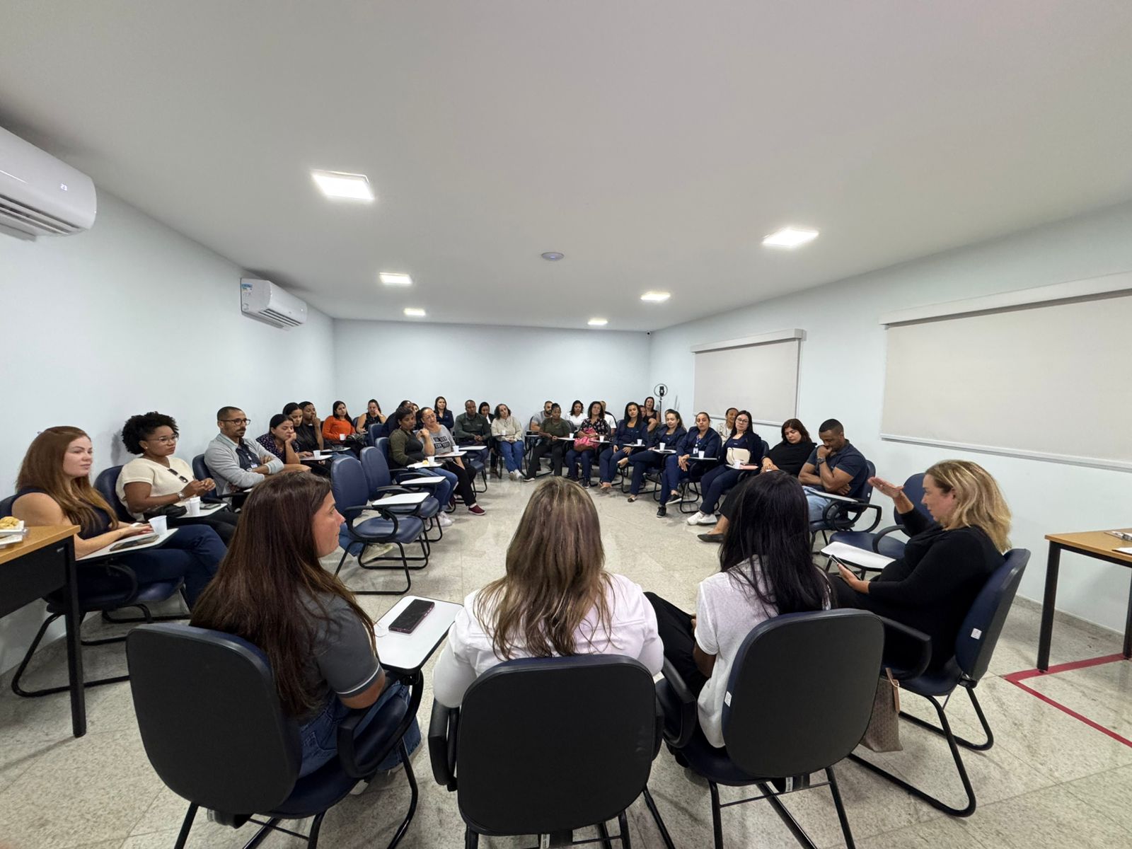 Ainda no mesmo dia, foi realizada uma roda de conversa no Hospital Unimed, conduzida pela psicóloga Eliz, na qual os colaboradores puderam esclarecer dúvidas, compartilhar experiências e refletir sobre o cuidado emocional no dia a dia.