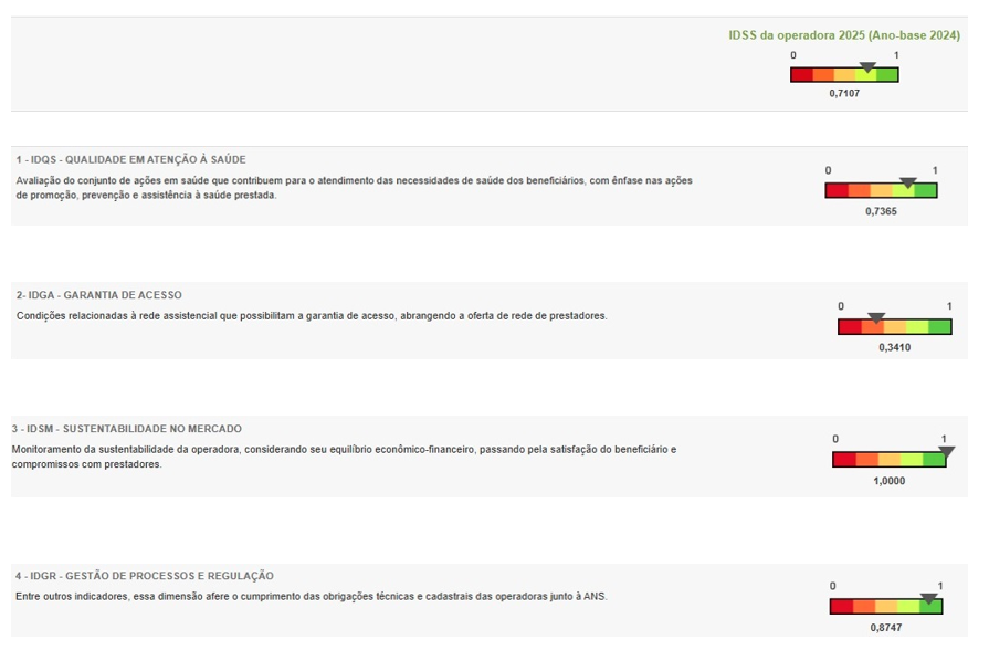 A Agência Nacional de Saúde Suplementar (ANS) divulgou em dezembro o Índice de Desempenho da Saúde Suplementar (IDSS) 2025, ano-base 2024. A Unimed Nova Iguaçu alcançou a nota 0,7107, mantendo-se na faixa de avaliação boa, conforme os critérios do órgão regulador.